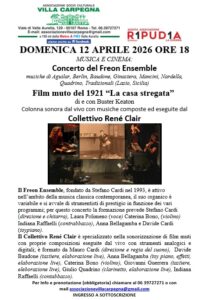 12|4. Roma. Ore 18.00 MUSICA E CINEMA Associazione Socio Culturale di Villa Carpegna Il mondo in tre minuti.Concerto del Freon Ensemble Musiche di Aguilar, Berlin, Baudone, Ginastera, Mancini, Nardella, Quadrino, Tradizionali (Lazio e Sicilia) La casa stregata. Film muto del 1921 di e con Buster Keaton Colonna sonora dal vivo con muschie composta e arrangiate dal Collettivo René Clair